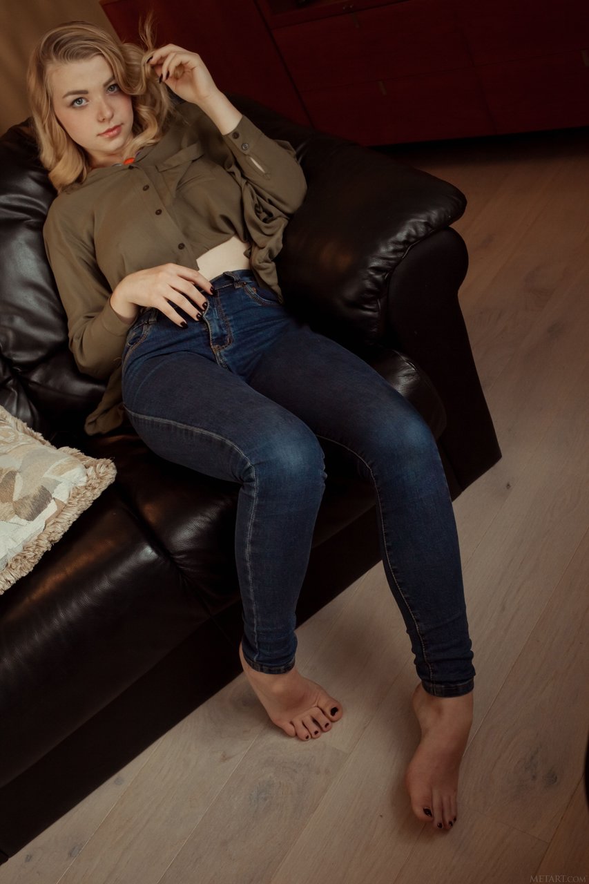 Daniel Sea lounges in a deep leather couch. She is reading a large book but her eyes are alive with lust. Stripped of her clothes she reclines in the nude, showing off her beautiful nude body with large naural breasts and hot pink slit shaved bald. The more she reads the more excited she becomes!