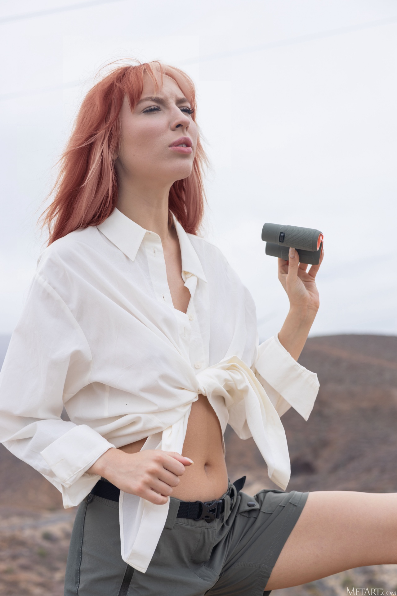 Sunlit devotion with sexy redhead Lilly Mays enjoying the great outdoors. She finds a nice spot near a wind farm and off comes the white shirt and cargo shorts for some deliciously naughty nude fun …