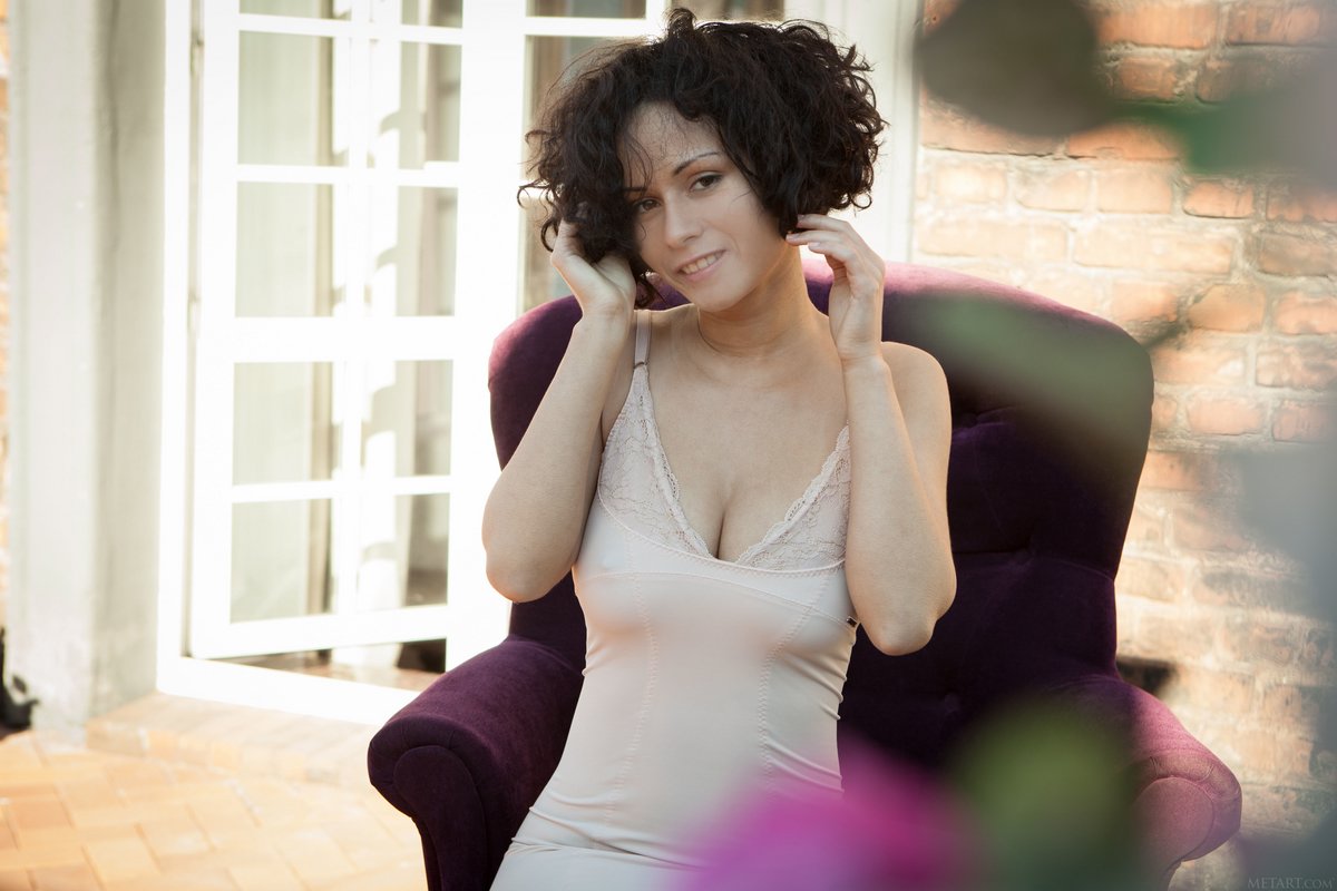 Gorgeous Pammie Lee with her ample breasts and frizzy hair in a tight peach cocktail dress. She creates so much sexual tension when she slips off the dress, her dark eyes burning with lust. She has a thick triangle of dark pubic hair and a body that looks just jaw-dropping naked.
